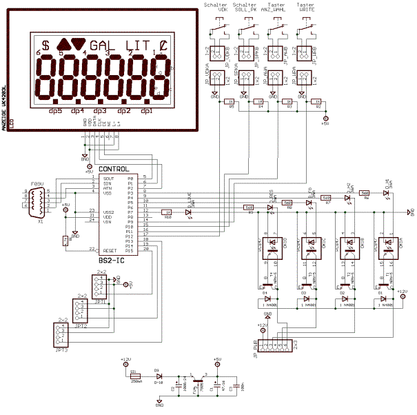 Der verwendete Basic 2-IC der Fa. http://www.parallaxinc.com/ besitzt 16 frei konfigurierbare I/O und einen Anschluss für die Datenübertragung zum PC (RS232/Programmierung/debug).